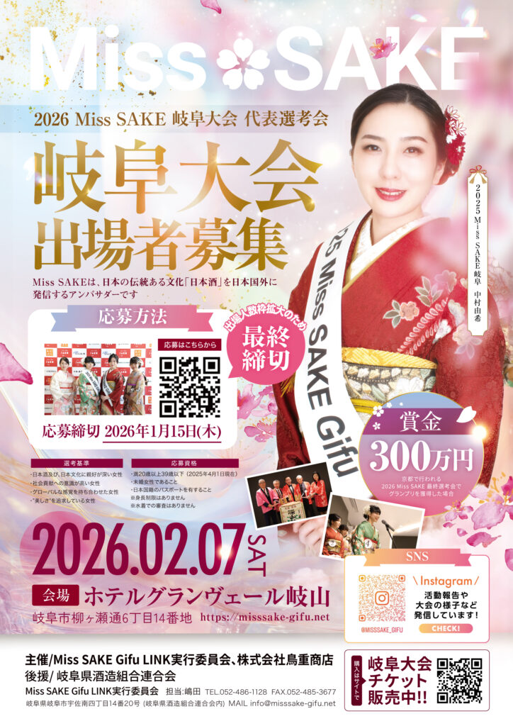 この度、2026 Miss SAKE 岐阜大会の開催が決定いたしました。